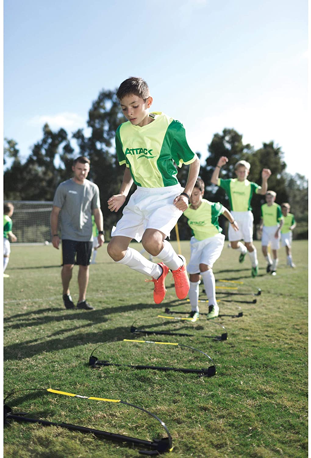 Quick adjustable mini hurdles for running and agility drills. 6″, 9″, and 12″ settings.