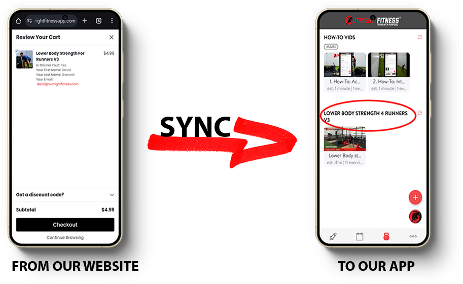 After checkout, your workouts automatically sync to the our Training app. New users receive an email to set up their account, while returning users will see new workouts added instantly.